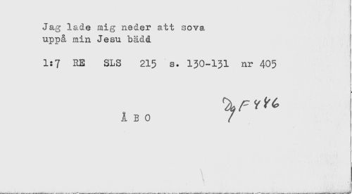 //// Jag lade mig neder att sova //// uppå min Jesu bädd //// 1:7 RE SLS 215 s. I3O-I3I nr 405 //// < //// ÅBO / ////