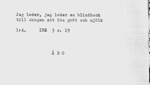 //// Jag leder, jag leder en blindbock r //// till skogen att äta gröt och mjölk //// 1:4, INE 3 s. 19 ; //// ÅBO //// [ ////
