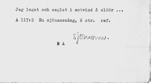 //// Jag legat och seglat i motvind å slöör ... //// A 117:2 En sjömanssång, 6 str. ref. //// t //// i //// t //// ^ j PlA^^, YtAj . //// R A V //// i //// ......,. _ ,...... . ^ ^ . . ^ ......... ... . .. ////