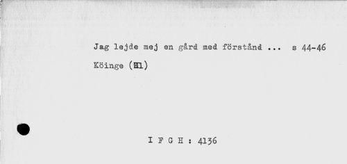 //// Jag lejde mej en gård med förstånd ... s 44-46 //// Köinge (El) //// ; //// ^ I F G E : 4136 ////