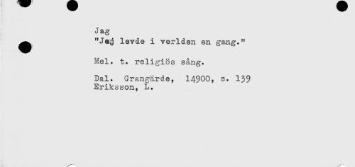 //// Jag //// ^ "Jaj levde i verlden en gang." //// Mel. t. religiös sång. //// Dal. Grangårde, 14900, s. 139 //// Eriksson, L. //// if * ////