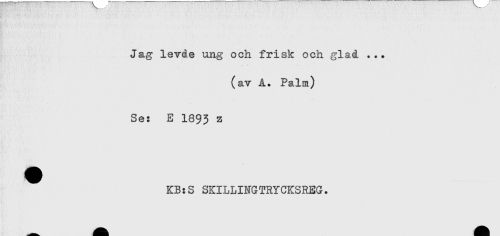 //// Jag levde ung och frisk och glaå ... //// (av A. Palm) //// Se: E 1893 z //// ^ KB:S SKILLINGTRYCKSREG. ////