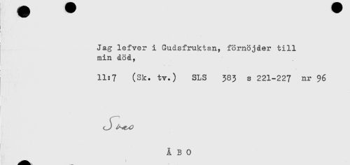 //// i //// Jag lefver i Gudsfruktan, förnöjder till //// min död, //// i . * ^ * //// ! //// 11:7 (Sk. tv.) SLS 383 s 221-227 nr 96 //// I //// (J ////