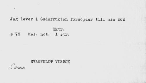 //// Jag lever i Gudsfruktan förnöjder till min död //// Sktr. //// s 73 Mel. not. 1 str. //// SVANFELDT VISBOK ////