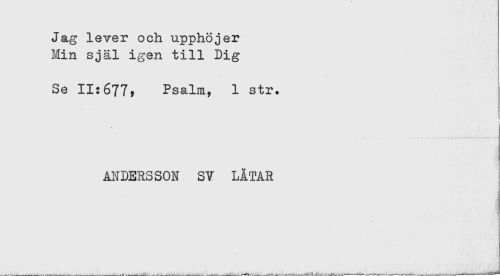 //// Jag lever och upphöjer //// Min själ igen till Dig //// . //// Se 11:677, Psalm, 1 str. //// ANDERSSON SV LÅTAR ////