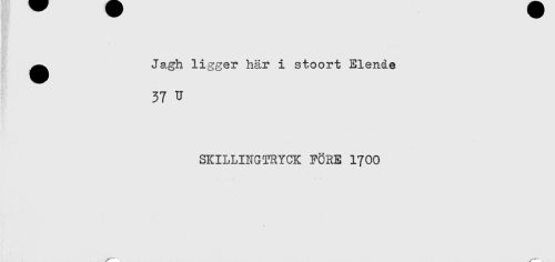 //// ^^ Jagh ligger här i stoort Elende //// 37 u //// SKILLINGTRYCK FCRE 1700 ////