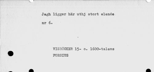 //// Jagh ligger här uthj stort elende //// nr 6. //// a //// * ' . . < . . ^ //// VISBCCKER 15- o. 1600-talens //// * FORSIUS ////