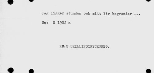 //// Jag ligger stundom och mitt liv begrundar ... //// Se: E 1902 n //// KB:S SKILLINGTRYCKSREG. ////