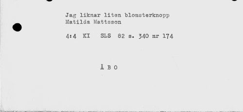 //// Jag liknar liten blomsterknopp //// ^ Matilda Mattsson //// 4:4 Kl SLS 82 s. 340 nr 174 //// ÅBO //// L... .. _ . , .......' ,, .. . ____ ////