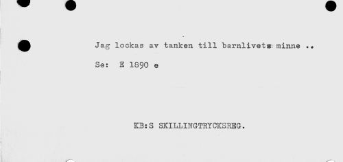 //// ^^ Jag lockas av tanken till bamlivetn minne .* //// Se: E 1890 e //// KB:S SKILLINGTRYCKSREG. ////