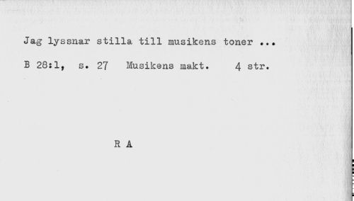 //// Jag lyssnar stilla till musikens toner ... //// B 28:1, s. 27 Musikens makt. 4 str. //// R A //// s //// i ////