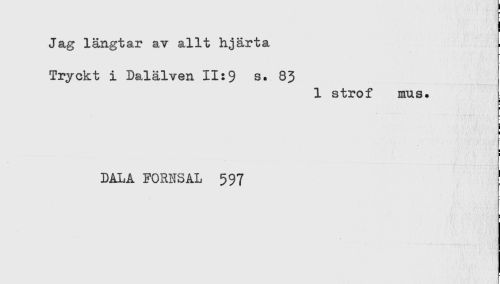 //// Jag längtar av allt hjärta //// Tryckt i Dalälven 11:9 s. 83 //// 1 strof mus. //// DALA FORNSAL 597 ////