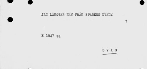 //// JAG LÄNGTAR HÄN FRÅN STADENS KVALM //// t //// E I847 qq //// s v A s ////