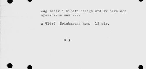//// Jag läser i bibeln heliga ord av barn och //// spenabarns mun .... //// A 516:6 Drinkarens hem. 12 str. //// !;' ' R A ////