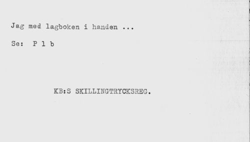 //// Jag med lagboken i handen ... //// Se: P 1 b //// KB:S SKILLINGTRYCKSREG. ////