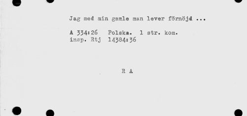 //// Jag med min gamle man lever fornöjd ... //// A 334:26 Polska. 1 str. kom. //// insp. Rtj 14384:36 //// R A //// 4 ////