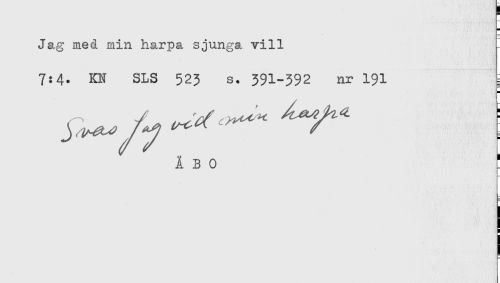 //// Jag med min harpa sjunga vill - //// 7:4. KN SLS 523 s. 391-392 nr 191 = //// ÅBO ////