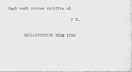 //// Jagh medh suckan skriffva må //// 7 u. //// / //// SKILLINGTRYCK FÖRE 1700 ////
