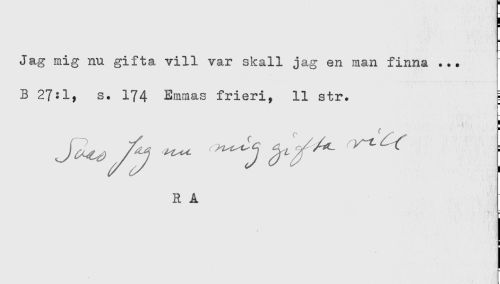 //// H //// 5 //// Jag mig nu gifta vill var skall jag en man finna ... //// B 27:1, s. 174 Emmas frieri, 11 str. E //// r ' //// R A //// t - ////