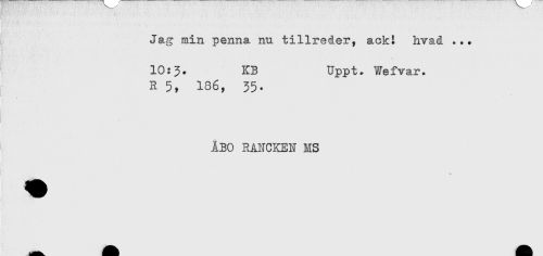 //// Jag min penna nu tillreder, ack! hvad ... //// 10:3. KB Uppt. Wefvar. //// R 5, 136, 35. //// ÅBO RANCKEN NS ////