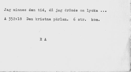//// Jag minnes den tid, då jag drömde om lycka ... //// A 352:18 Den kristna pärlan. 6 str. kom. //// / //// * f //// { //// R A //// J //// i //// { //// . . , .. , .. ... . ......... / , {.,.„ ,. ..... ,„..,. .. .. ////