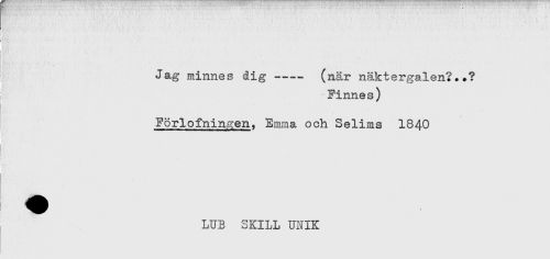 //// ... . . ' ^ . , ' . ' . ' ' \ '' . . ^ //// Jag minnes dig---- (när näktergalen?..? //// Finnes) //// Förlofnincren, Emma och Selims 1840 //// < //// LUB SKILL UNIK ////