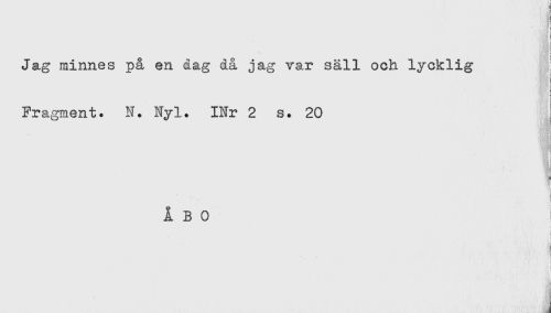 //// I //// ' t //// i //// ' < //// ! //// 't //// Jag minnes på en dag då jag var säll och lycklig ; //// i //// 'M //// 1 //// ' < * ! //// Fragment. N. Nyl. INr 2 s. 20 //// 'sM //// N //// j //// ÅBO //// ) //// å //// J ////