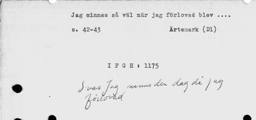 //// Jag minnes sa väl när jag förlovad blev .... //// s. 42-43 Artemark (Dl) //// - - T. . . //// * //// I F G H : 1175 //// * ////