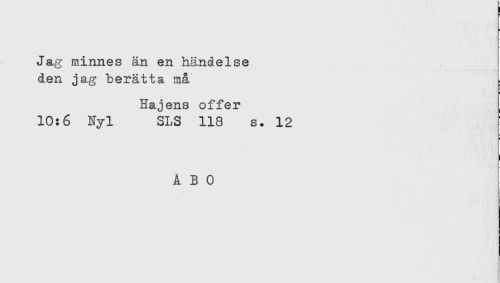 //// Jag minnes än en händelse //// den jag berätta må //// Hajens offer //// 10:6 Nyl SLS 118 s. 12 //// ÅBO ////