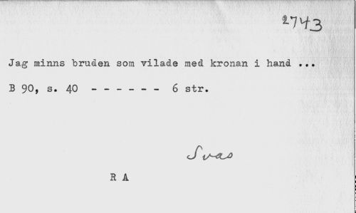 //// Jag minns bruden som vilade med kronan i hand ... //// B 90, s. 40------6 str. //// -. j ''' '* ^n //// R A ////