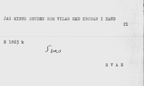 //// JAG MINNS BRUDEN SOM VILAR MED KRONAN I HAND //// 21 ! //// E I863 k //// S V A S ////