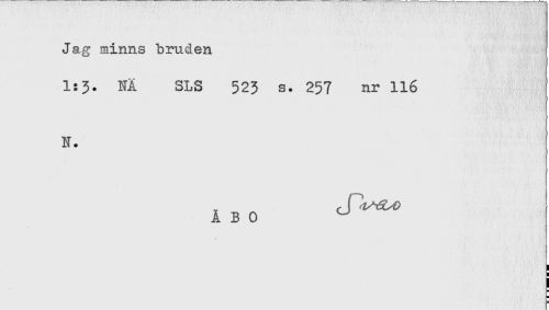 //// Jag minns bruden //// 1:3. NÅ SLS 523 s. 257 nr 116 //// N. //// ABO ^^ //// i //// H //// H //// 5 ////