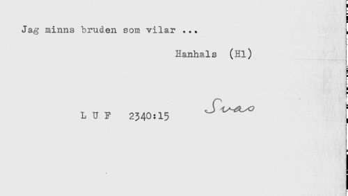 //// Jag minns bruden som vilar ... //// Hanhals (Hl) //// 0 //// < //// r //// LUF 2340:15 //// 1 ////