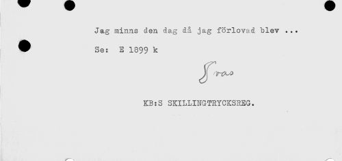//// Jag minns den dag då jag förlovad blev ... //// ^ Se: E 1899 k //// KB:S SKILLINGTRYCKSREG. ////