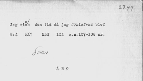 //// n/ //// Jag mins den tid då jag förlofvad blef //// 8:4 PÄ? SLS 104 a.s.107-108 nr. ////