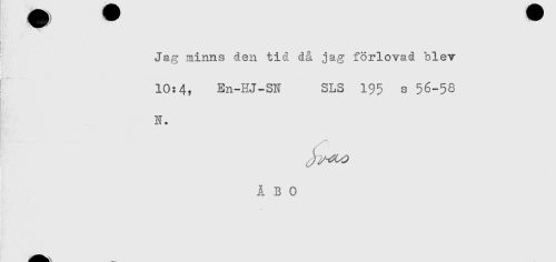 //// icp!' BH ] //// Jag minns den tid då jag förlovad blev //// * //// 10:4, En-HJ-SN SLS 195 3 56-58 //// N. //// ÅBO ////