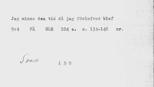 //// Jag minns den tid då jag förlofvad blef //// 9:4 PÄ SLS 104 a. s. 134-146 nr. //// 4 //// ^ A B 0 ////
