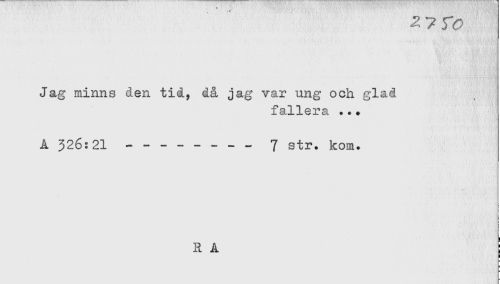 //// 2 7 513 //// Jag minns den tid, då jag var ung och glad //// fallera ... //// A 326:21 - ------- 7 str. kom. ////