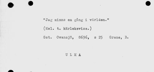 //// "Jag minns en g&ng i världen." //// (Hel. t. kärleksvisa.) //// Gst. Ovansjö, 86%, s 25 Grane, B. //// U L M A ////