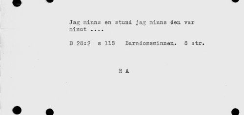 //// Jag minns en stund jag minns den var //// minut .... //// - //// B 28:2 s 118 Barndomsminnen. 8 str. //// 3 A //// T ////
