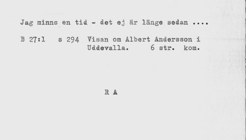 //// Jag minns en tid - det ej år länge sedan .... //// t //// B 27:1 s 294 Visan om Albert Andersson i //// Uddevalla. 6 str. kom. //// R A ////