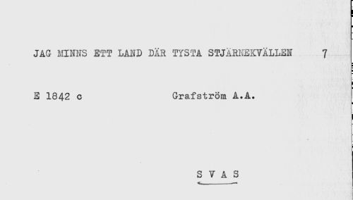 //// < //// t //// JAG MINNS ETT LAND DÄR TYSTA STJÄREEKVÄLLEN 7 //// E 1842 c Grafström A.A. //// S V A S //// f ////