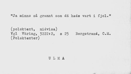 //// "Ja minns så grannt som dä hade vart i fjol." //// (polsktext, nidvisa) //// Vgl Väring, 3222:2, s 25 Bergstrand, C.M. //// (Polsktexter) ////