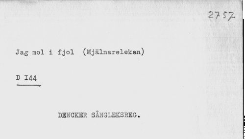 //// Jag mol i fjol (Mjälnareleken) //// D 144 //// DENCKER SÅNGLEKSREG. ////