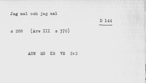 //// Jag mal och jag mal //// D 144 //// s 288 (Arw III s 370) //// ARW MS KB VS 2:2 ////