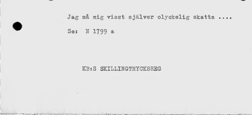//// Jag m& mig visst själver olyckelig skatta .... //// * Se: N 1799 a //// ! //// ! //// KB:S SKILLINGTRYCKSREG //// I ////