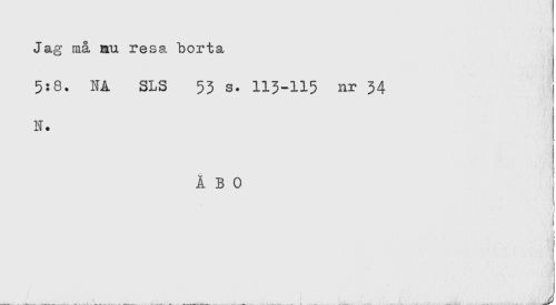 //// Jag må au resa borta //// 5:8. NÅ SLS 53 s. 113-115 nr 34 //// N. //// ÅBO //// t //// j //// [ //// f //// < ////