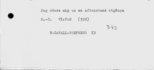 //// Jag månde mig om en aftonstund utgå.nga //// ^ H.-C. VI:F:8 (329) //// D43 //// H-CAVALL-STEPHENS KB ////