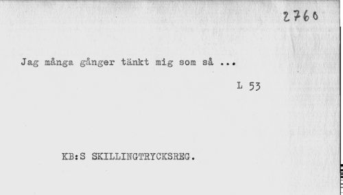 //// Jag många gånger tänkt mig som så ... //// * //// L 53 //// KB:S SKILLINGTRYCKSREG. //// a //// H ////