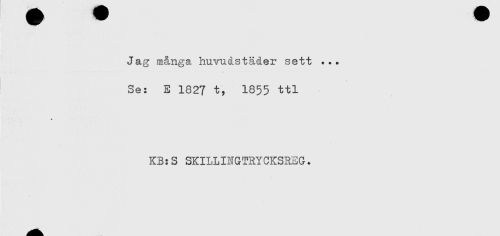 //// Jag många huvudstäder sett ... //// ^ ... < . . //// Se: E 1827 t, 1855 ttl //// KB:S SKILLINGTRYCKSREG. ////